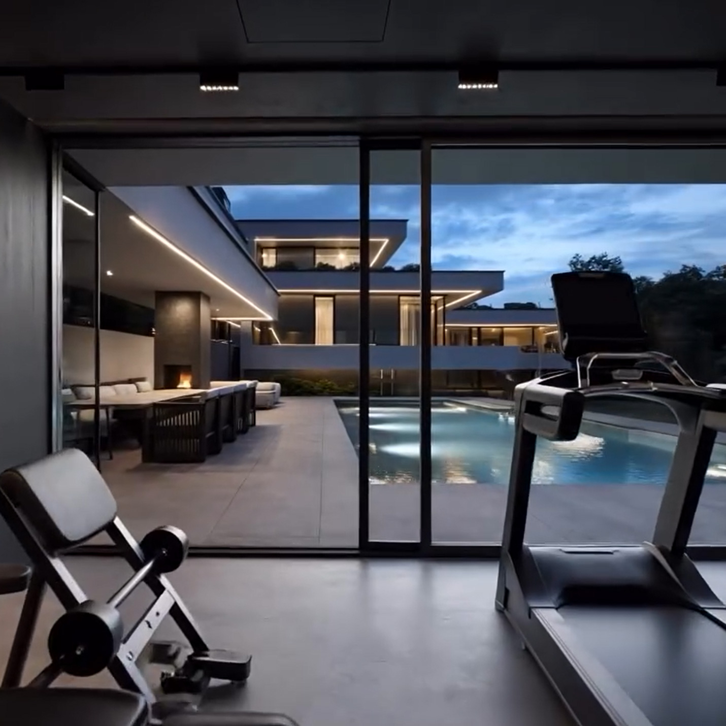 Kamera tiše proplouvá z domácího fitness směrem ven, k vodní hladině, večernímu světlu a otevřenému prostoru. Linie se protahují, světlo měkne a hranice se postupně rozpouští.